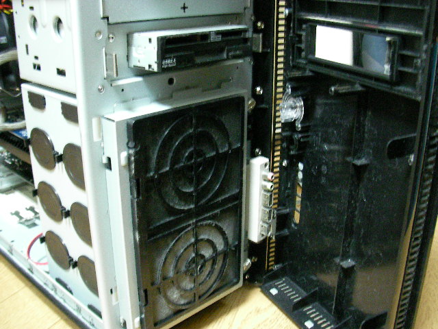 このケースはHDDへアクセスするためにはフロントパネルを開ける必要があるものです。(物によってはサイドから出し入れできたり、特殊な設置方法を取っているケースもあります)